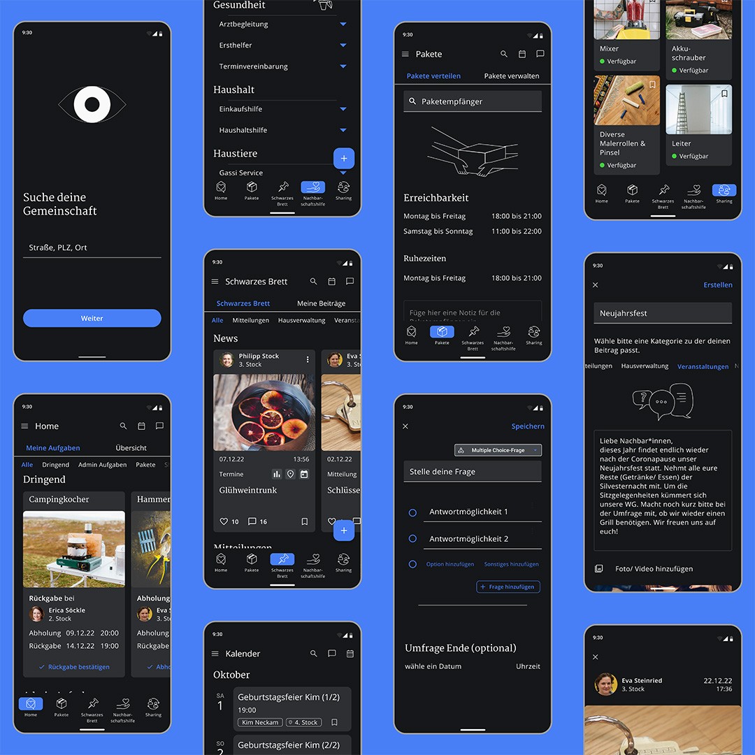 In unseren Mehrfamilienhäusern steckt oft mehr Potenzial als wir denken. Egal ob es sich dabei um das annehmen von Paketen, einer Leihgabe oder Nachbarschaftshilfe handelt. Für die Bildung einer Gemeinschaft ist eine einfache, schnelle Kommunikation sowie Struktur und Organisation essentiell. Die App "Glücksgemeinschaft" sorgt dafür, dass Hausgemeinschaften gezielt mit einander kommunizieren und sich organisieren können, um die Potenziale dieser besser zu nutzen.