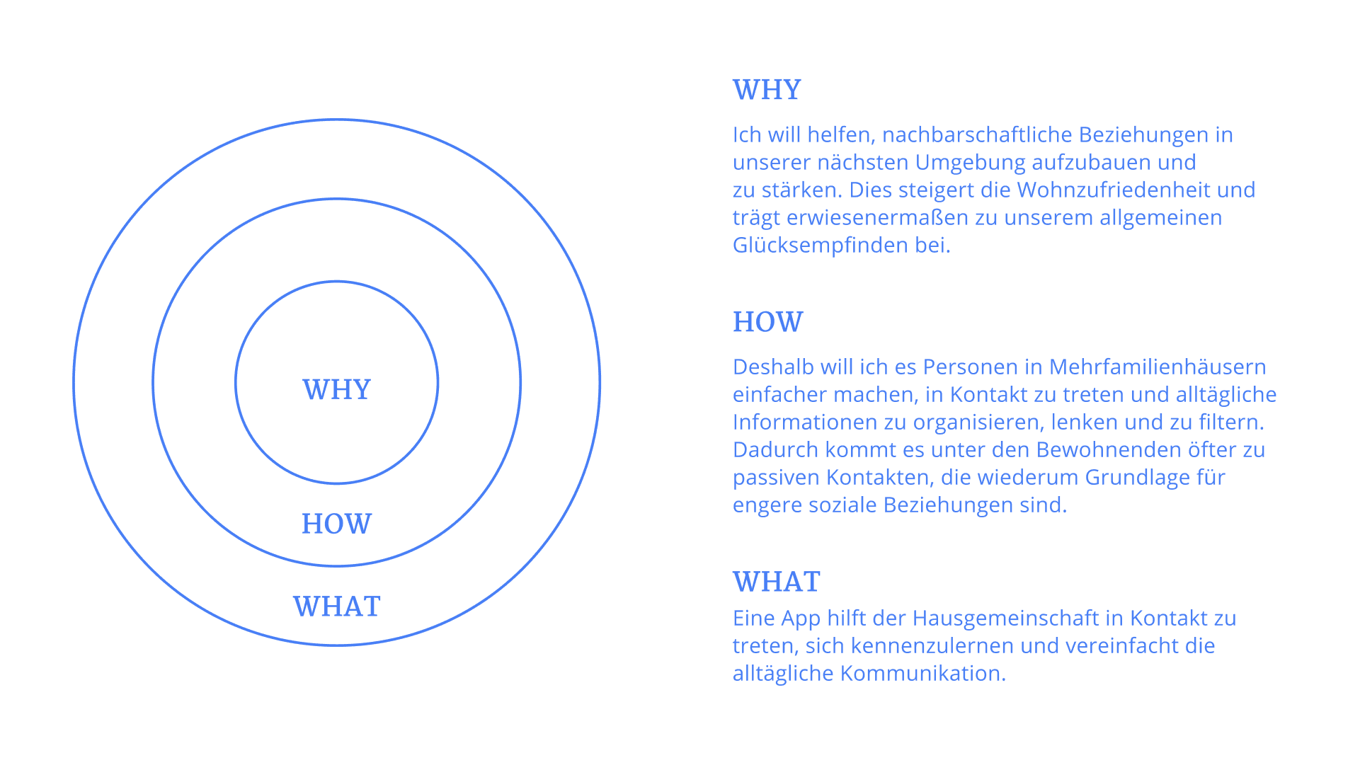 „The Golden Circle“ von Simon Sinek hilft, die richtigen Fragen zu stellen, um die Intension und die Ziele zu erkennen.